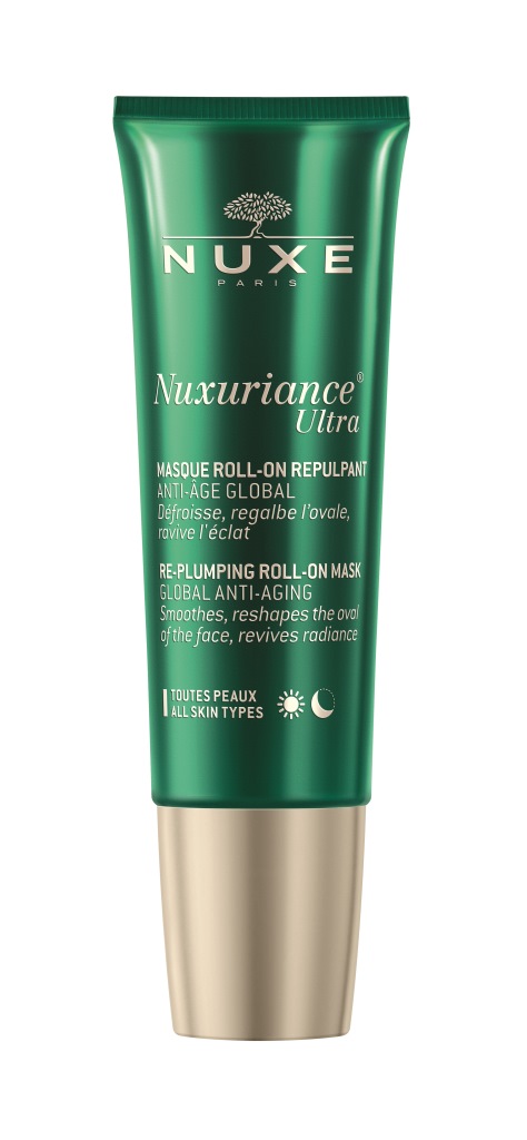 Nuxuriance Ultra, Nuxe, é uma máscara Roll-On redensificadora. Possui aplicador de massagem. Pode aplicar-se para um efeito tensor imediato, sem massagem, ou com massagem para prevenir o envelhecimento prematuro ( PVPR: €42,50).