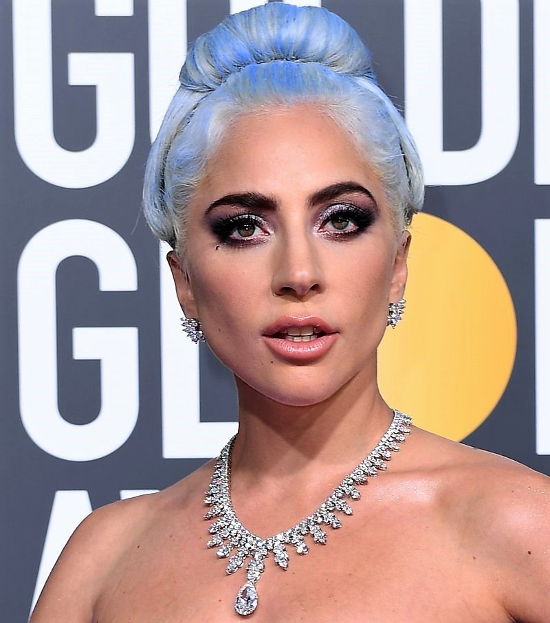 Lady Gaga fez furor com o seu louro platinado com nuances azuis.